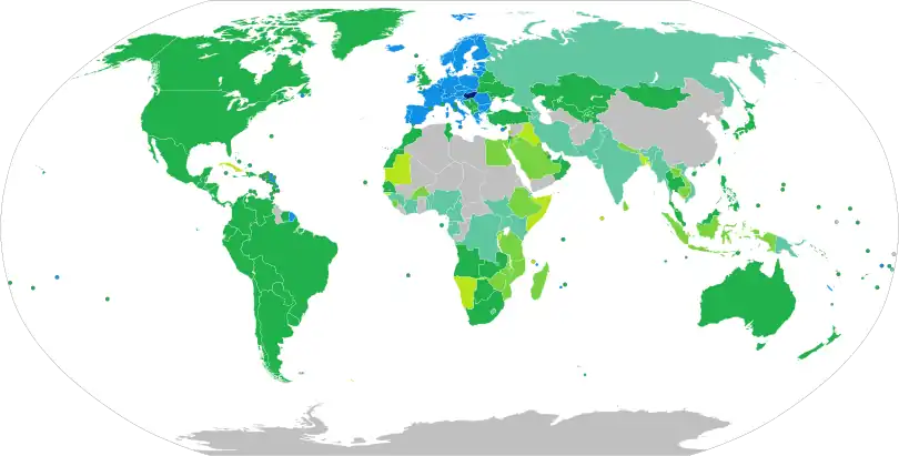 Because Hungary forms part of the European Union, Hungarian citizens are also citizens of the European Union under European Union law and thus enjoy rights of free movement and have the right to vote in elections for the European Parliament.[7] When in a non-EU country where there is no Hungarian embassy, Hungarian citizens have the right to get consular protection from the embassy of any other EU country present in that country.[8][9] Hungarian citizens can live and work in any country within the EU as a result of the right of free movement and residence granted in Article 21 of the EU Treaty.[10]