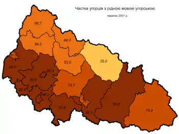 Distribution of ethnic Hungarians in raions in the Zakkarpattia Oblast[23]