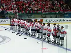 The Hungarian men's national ice hockey team is the national ice hockey team of Hungary. They have participated in the IIHF European Championships, the IIHF World Hockey Championships and the Olympic Games since 1928.[2] A consistent participant of the annual World Championship, Hungary has played at the Olympics three times, most recently in 1964. They are currently ranked 19th in the world by the IIHF.