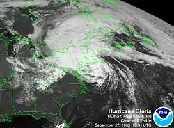 - September 27, 1985 – Hurricane Gloria passes east of Maryland and drops over 7 in (180 mm) of rain. Wind gusts to 40 mph (64 km/h) blast the coastline, causing beach erosion.[31]
