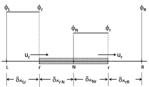 Hybrid difference scheme is a method used in the numerical solution for convection-diffusion problems. These problems play important roles in computational fluid dynamics. It can be described by the general partial equation as follows:[6]