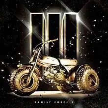 III is the third album by Christian alternative group, Family Force 5, released on October 18, 2011 and the last album to feature Solomon Olds before his departure from the band in 2013. The song "Not Alone" charted at No. 47 on the Hot Christian Songs.[1] The next single, "Get On Outta Here", was free for several days before paid release, where it charted at No. 27 on iTunes Rock chart. Wobble charted at No. 20 on the Alternative charts for a week. "Paycheck" was the final single from the album, but did not chart. However, a music video was made for the song.