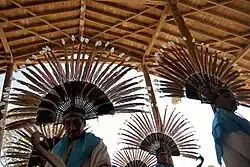 One of the most important events is the dance of the Machateros (or Chipiperono in the indigenous language), where men wearing wide headdresses adorned with feathers perform a dance with a wooden machete. It is believed that wearing the feathers invokes the soul of the bird, and therefore the sun, so the Machateros are often considered as sun warriors.[2]