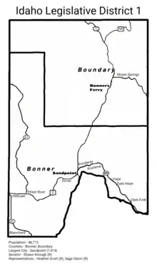 District 1 currently consists of Boundary County and a portion of Bonner County.[4]