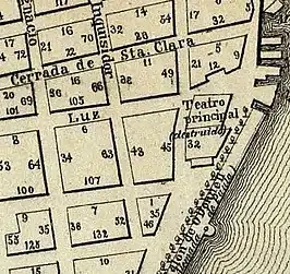 The Coliseum was the first building erected in Havana to provide theatrical performances, it opened its doors on January 20, 1775. It was located in front of the Alameda de Paula between Calles Acosta, Oficios, and Luz, in Old Havana. Built between 1773 and 1775, the initiative for the creation of the theater came from the Marquis de la Torre, who managed to gather on July 2, 1773, the most important merchants and the main personalities of the city with the aim of raising funds for the construction of the building. Shortly after, work began on the masonry and wood building, directed by the Havana architect Antonio Fernández de Trebejos y Zaldívar; in the year 1775, it was announced that on the 20th of that current month, the performance of comedies would begin in the new Coliseum.[6]