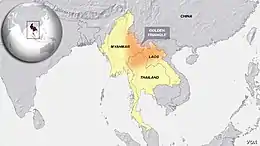 The Golden Triangle is one of Asia's main opium-producing areas with the other area being the Golden Crescent. The triangle is an area of roughly 350,000 square kilometers that overlaps the mountainous regions of four nations of Southeast Asian: Myanmar also known as Burma, Laos, and Thailand. The Golden Crescent is located at the intersection of Central, South, and Western Asia.