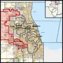 From 1865 to 1867, the district included Bureau, LaSalle, Livingston and Woodford counties.[3] From 1901 until 1947 the 11th congressional district included Kane, DuPage, McHenry and Will Counties. Following the Congressional Apportionment Act of 1947, the district covered a portion of Cook County and the far northwest side of Chicago roughly centered on Norwood Park.[4] The district was not changed by 1951's redistricting.[5] In 1961, the district was widened westward to the Des Plaines River and east into parts of Lincoln Square.[6] The district covered the northwest side of Chicago until the early 1990s when it moved closer to its current area, encompassing most of LaSalle and Grundy Counties, the southern part of Will County, the northern part of Kankakee County and a small portion of southeastern Cook County along the Indiana state line.[7] The Illinois Congressional Reapportionment Act of 2001 (10 ILCS 76) defined its boundaries following the 2000 U.S. census.