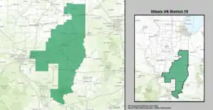 The 15th congressional district of Illinois is currently located in central Illinois. It was located in eastern and southeastern Illinois until 2022. It is currently represented by Republican Mary Miller.