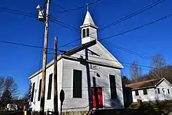 Immanuel Evangelical Lutheran Church is a historic Evangelical Lutheran church located at E Pine and N Ziegler Street in Pilot Knob, Iron County, Missouri. It was built in 1861, and is a simple, rectangular, frame building. It measures 30 feet, 7 inches, by 45 feet, 7 inches. It is sheathed in clapboard and has a gable roof topped by a hexagonal cupola with a steep, pyramidal roof and apron.[2]:3