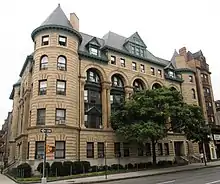 The Imperial Apartments is a Renaissance style residential building at 1198 Pacific Street in the Crown Heights neighborhood of Brooklyn in New York City. They were designed by architect Montrose Morris for the developer Louis F. Seitz in 1892.[1] At the time of construction, single-family row houses were typical for the middle-class families. Changing attitudes in the late 19th century made it socially acceptable for families to live in the apartment house. Morris designed the Imperial to speak to these changing attitudes and introduced a high-quality of design and materials such as yellow and buff brick and terra cotta to the building seamlessly blending it in with the surrounding neighborhood of Grant Square.[2]