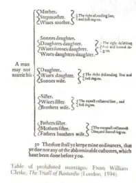 - ↑ "A Table of Kindred and Affinity". Book of Common Prayer. Canada. 1962. Archived from the original on 29 November 2014. Retrieved 26 December 2014.
