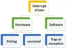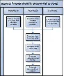 - ↑ The operating system might resume the interrupted process or might switch to a different process.