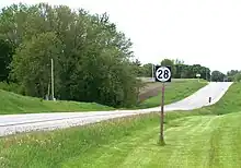 Iowa Highway 28 is a 21.73-mile-long (34.97 km) state highway located in south central Iowa. The route begins at Iowa Highway 92 at Martensdale and ends at Interstate 35 / Interstate 80 in Johnston. It is the first major north–south highway east of Interstate 35 in the Des Moines metropolitan area.