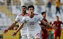 Iran qualified for the 2015 AFC Asian Cup as group winners where Team Melli were the highest ranked seed.[41] Iran faced Bahrain, Qatar and the UAE in Group C. With the second highest number of fans in the tournament after hosts Australia, the Iranians defeated Bahrain 2–0 with limited preparations.[42][43] A defensive-minded Iran then defeated Qatar 1–0 thanks to a Sardar Azmoun goal before defeating UAE by the same scoreline to reach the top of their group.[44][45] In the quarter-finals Iran faced Iraq who they had beaten weeks prior in a friendly match. Having received a controversial red card in the first half, Iran competed with ten men, managing to score goals late in extra time to draw the match 3–3. In the ensuing penalty shootout, Iran lost 7–6.[46][47]