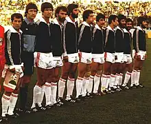 In 1978, Iran made its first appearance in the World Cup after defeating Australia in Tehran. Iran lost two of three group stage matches against the Netherlands and Peru.[11] Team Melli managed to surprise some in the footballing community[12] by securing one point in its first ever World Cup appearance against Scotland which saw Iraj Danaeifard cancel out an own goal scored by Andranik Eskandarian for the 1–1 draw.[13]