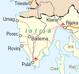 - ↑ "Regione Istriana: Struttura organizzativa" (in Italian). Archived from the original on 11 November 2018. Retrieved 11 November 2018.