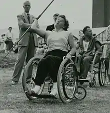 Maria Scutti on podium at the 1960 Summer Paralympics.