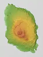The island is a stratovolcano with a basaltic composite cone, dating from the late Pleistocene period, between 10,000 and 15,000 years ago. It rises from an ocean floor with a depth of between 300 and 400 meters (984 and 1,312 ft). The island has a roughly circular coastline of approximately 52 kilometers (32 mi) in length. The highest elevation, Mount Mihara (三原山, Mihara-san), is an active volcano with a height of 758 meters (2,487 ft). The mountain has been recorded to have erupted numerous times through history and is mentioned as far back as Nara period written records.