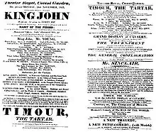 - ↑ Obituary, The New York Times. The playbill for King John states that if the play meets with "approbation and patronage" more of Shakespeare's plays will be performed "Dressed in the same splendid, novel, and interesting style".