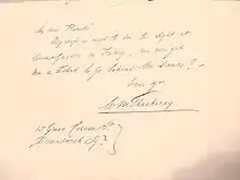 Planché's scholarship was recognised in his election in 1829 as a Fellow of the Society of Antiquaries of London. He was a regular attendee at the Society's meetings and contributed to its journal, Archaeologia. However, he became dissatisfied with its management, complaining of "the lethargy into which the Society of Antiquaries had fallen, the dreariness of its meetings, the want of interest in its communications and the reluctance of its council to listen to any suggestions for its improvement". In 1843–4 Planché was involved in the foundation of the British Archaeological Association, of which he was later Vice-President, and for more than twenty years the Secretary.[8][40] Planché resigned his membership of the Society of Antiquaries in 1852,[8] in which year he also moved to Kent to live with his younger daughter.[1]