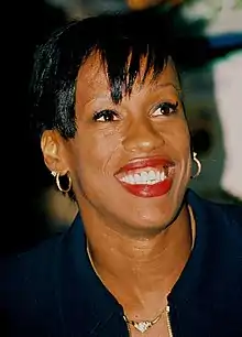 Joyner-Kersee is an active philanthropist in children's education, racial equality and women's rights.[3] She is a founder of the Jackie Joyner-Kersee Foundation, which encourages young people in East St. Louis to pursue athletics and academics.[3] She collaborated with Comcast to create the Internet Essentials program in 2011, which provides high-speed internet access to low-income Americans.[3][4][5]