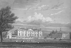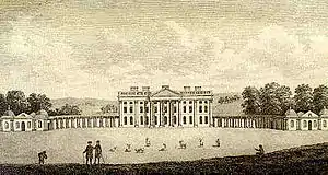 The house was to have similarities with one of Leoni's more ambitious projects, Lathom House. Both were similar in concept to Andrea Palladio's never-built Villa Mocenigo, with great spreading and segmented collonaded wings embracing a cour d'honneur. Today, the wings have been demolished but the square corps de logis remains.[14]