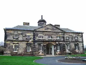 However, Leoni's clients were not always satisfied, especially when he designed for clients unaware of the intricacies of Palladian architecture. Leoni had been commissioned by Edward and Caroline Wortley to rebuild the decayed Wortley Hall in South Yorkshire. A magnificent residence arose. However, in 1800, the Wortleys complained they were unable to move in, as the architect had forgotten to build a staircase.[17] One hundred years later, a Duchess of Marlborough made the same complaint against Sir John Vanbrugh's Blenheim Palace. Both owners had rather missed the point of a house built on a 'piano nobile' design. A piano nobile is the principal floor, usually above a lower floor or semi-basement. It contains all the rooms necessary for the grandees who inhabit the house. It usually consists of a central salon or saloon (the grandest room beneath the central pediment); on either side of the saloon (in the wings) there is often a slightly less grand, withdrawing room, and then a principal bedroom. After that perhaps would follow a smaller more intimate room, a "cabinet". The point both the Duchess and owners of Wortley had failed to grasp was that the owners lived in 'state' on the 'piano nobile' and had no need to go upstairs, hence only secondary/back staircases would reach the floors that were occupied by children, servants and less favoured guests. Indeed, these houses often did have a grand staircase, but it was external—the elaborate flights of stone steps to the main entrance on the piano nobile. From photographs of Wortley Hall, one can see the large, tall windows of the 'piano nobile' on the lower floor, and the much smaller windows of the secondary rooms above. It did not require a 'grand' staircase'. Wortley Hall survives today as a hotel; the owners still tell the story of the forgetful architect. Among Leoni’s other designs is Alkrington Hall in Middleton, now in Greater Manchester.[18] Leoni also designed the longtime US Consulate building in Istanbul, the Palazzo Corpi.