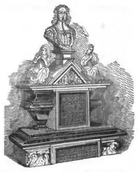 His monument was erected in the Chapel of St. Paul, in the hamlet of Hammersmith, built in 1631, then a chapel of ease of Fulham parish church. It was demolished and rebuilt in 1882 as St Paul's Church, Hammersmith,[7] in which his monument was re-erected. The monument was described as follows by Falkner (1839):