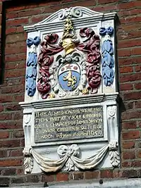 In the town of Maidenhead, then in the parish of Cookham, Berkshire, in which parish he was born, in 1659 he built eight almshouses of two rooms each for eight poor men, aged over 50 and parishioners of Cookham, and their wives. He endowed it with Norden's Farm, a 116-acre estate in the parish of Bray, the rental receipts from which were to be paid to the Worshipful Company of Salters which then distributed sums to the residents in amounts and at times as set down in the foundation deed.[4] The Almshouses still operate today under the management of the Salters Company.[5]