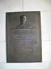 Plaque to Wilson inside the USDA Building, where a pedestrian arch is named for him