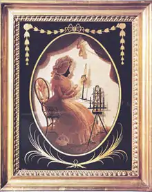 Read painted portraits from the 1790s until 1815.[5] She painted silhouettes, generally on glass, for her mother from the early 1790s until 1797.[6][7] Read's work was influenced by her mother's style and was often framed in pearwood or papier-mache.[5] Her name (Miss Beetham) appeared on the sixth of seven trade labels issued by Isabella's business. The sixth label was used in the 1790s.[3] In the late 1790s, Jane developed her own business with her own trade label. She added brass or ormolu frames as her career progressed.[5]