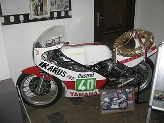 János Drapál (3 February 1948 – 11 August 1985) was a Grand Prix motorcycle road racer from Budapest. He had little chance to race in the Grand Prix world championships during the Cold War, but still won four Grand Prix races. Drapál had his best year in 1971 when he won the Yugoslavian Grand Prix and finished the year in seventh place in the 350cc world championship, riding a Yamaha.[1] In 1973 he won two Grand Prix races but slipped to ninth place in the 350cc world championship. Drapál was killed in 1985 after a collision with a Czech track marshal during a 250cc race at the Piešťany airfield circuit in Czechoslovakia.[2]