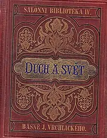 Vrchlický's early poetry expresses his perception of life through natural motifs. It deals with love experiences, youthful pessimism and artistic self-doubt. His reflections are shown in natural imagery, his poems praise the ideals of art and beauty.[5] It is represented mainly by the collections: