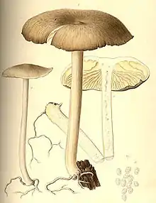 Illustration of Megacollybia platyphylla by Émile Boudier, in Icones mycologicae.