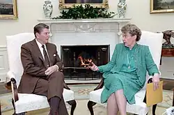 - ↑ according to Burns, John F. (December 28, 2012). "Papers Show Rare Friction for Thatcher and Reagan". The New York Times. p. 8. Archived from the original on January 19, 2023. Retrieved September 1, 2017.