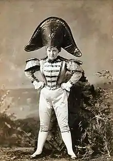 Jennie Lee (c. 1854[1][2] – 3 May 1930) was a Victorian Era English stage actress, singer and dancer whose career was largely entwined with the title role in Jo, a melodrama[3] her husband, John Pringle Burnett,[4] wove around a relatively minor character from the Charles Dickens novel, Bleak House. She made her stage debut in London at an early age and found success in New York and San Francisco not long afterwards. Lee may have first starred in Jo around 1874 during her tenure at San Francisco's California Theatre, but her real success came with the play's London debut on 22 February 1876 at the Globe Theatre in Newcastle Street. Jo ran for many months at the Globe and other London venues before embarking for several seasons on tours of the British Isles, a return to North America, tours of Australia and New Zealand and later revivals in Britain. Reduced circumstances over her final years forced Lee to seek assistance from an actor's pension fund subsidised in part by proceeds from Royal Command Performances.[5][6]