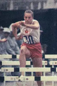 Jennifer Anne "Jenny" Meldrum (née Wingerson on 12 April 1943) is a retired hurdler, shotputter, long jumper and pentathlete from England, who represented Canada at the 1964 and 1968 Olympics in the 80 metre hurdles and pentathlon. She won a silver medal at the 1963 Pan American Games and a bronze at the 1966 Commonwealth Games in the 80 m hurdles. She won two more silver medals at the 1967 Pan American Games in the pentathlon and 4×100 metre relay. At the 1970 Commonwealth Games Meldrum won a bronze in the pentathlon.[1] Jenny Meldrum's son, Greg Meldrum, played for the Canadian Men's National Basketball team in the early 2000s.