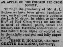 Advertisement from the Colored Red Cross which appeared in The Sea Coast Echo (Bay Saint Louis, Mississippi) on 8 September 1917