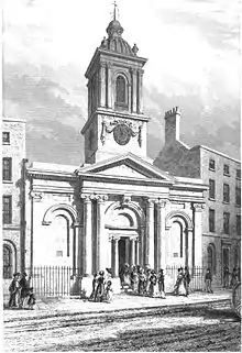 In 1788–92 he rebuilt the church of St Peter le Poer in Broad Street in the City of London,[3] with an unusual circular nave and a Classical facade. The interior was described in Britton's Illustrations of the Public Buildings of London as having "more the air of a lecture room than a church".[4]