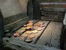 The site of the second Lord of Ruyin's tomb, called Shuanggudui, was rediscovered in 1977 when Fuyang's municipal airport was undergoing an expansion.[3] Two tombs were found, although only one contained texts. Much like Mawangdui, important classical Chinese texts were found at Shuanggudui that shed new light on ancient Chinese culture and literature. Texts recorded on bamboo strips were found at Shuanggudui, including the Yijing, Classic of Poetry, Zhuangzi, Cang Jie Pian (primer), Classic for Physiognomizing Dogs (相狗經), tables of historical annals, studies of myriad phenomena (萬物), a text on xingqi (行氣, circulating breath), and others.[3]