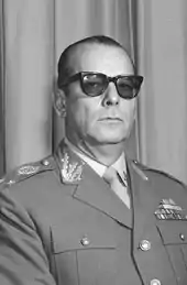 João Baptista de Oliveira Figueiredo (Portuguese: [ʒuˈɐ̃w baˈtʃistɐ dʒi oliˈvejɾɐ fiɡejˈɾedu, ˈʒwɐ̃w -]; 15 January 1918 – 24 December 1999) was a Brazilian military leader and politician who was the 30th president of Brazil from 1979 to 1985, the last of the military regime that ruled the country following the 1964 Brazilian coup d'état. He was chief of the Secret Service (SNI) during the term of his predecessor, Ernesto Geisel, who appointed him to the presidency at the end of his own mandate.