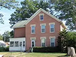 The Joachim Plambeck House is a historic building located in the West End of Davenport, Iowa, United States. It and the neighboring Claus Untiedt House are replicas of each other, although the Plambeck House has more alterations.[2] The 2-story Late Victorian style residence features a three-bay façade with a side entrance and a front gable. An enclosed porch was added in the re-entrant angle. Stone hoods that sit flush with the exterior wall decorate the tops of the rectangular windows. The light pink brick structure rests on a stone foundation that has subsequently been covered with cement.[2] Joachim Plambeck, who was the first occupant of this house, was a German immigrant and worked as a woodworker. The house has been listed on the National Register of Historic Places since 1984.[1]