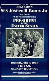 - 1 2 3 Dionne Jr. E. J. (June 10, 1987). "Biden Joins Campaign for the Presidency". The New York Times. Archived from the original on November 23, 2020. Retrieved February 9, 2017.