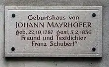 - ↑ Mayrhofer, Johann (1829). "Erinnerungen an Franz Schubert, in: Neues Archiv für Geschichte, Staatenkunde, Literatur und Kunst (1829) - Bayerische Staatsbibliothek". opacplus.bsb-muenchen.de. Retrieved 2022-12-18.