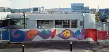 The 14 meter long "Wall of Joy" was designed by Johanna Rytkölä for the square of the police headquarters in the city of Tampere in 1993. The colorful ceramic mural is composed of factory made clinker tiles.[35]