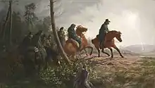 During the American Civil War, Oertel accompanied the Army of Virginia under General Burnside for several months in 1862.[1] His Virginia Turnpike and other landscapes were the fruit of his brief military experience. He painted some historical battle scenes, including one of the American Revolutionary War's Battle of Sullivan's Island, and some illustrations for Harper's Weekly, including a cover for the magazine's November 15, 1864 issue, Convalescent Soldiers Passing through Washington, DC, to Re-join their Units and The Union Scout.