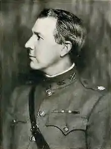 Following the entry of the United States into World War I in April 1917, White tendered his legal services to the United States Army and served in the Judge Advocate General's Corps.[5][9][12] White had previously attempted to enter the service of the U.S. Army through its various training schools to serve in World War I, but he had been rebuffed each time due to his advanced age of 49.[5] On December 6, 1917, White received "special permission" from President Woodrow Wilson to serve in the Army's Judge Advocate General's Corps with the rank of major.[5] Upon receiving his commission, White was ordered to London where he served as Assistant Judge Advocate General for United States Armed Forces personnel serving in the United Kingdom of Great Britain and Ireland.[5][13] White continued to carry out his duties in London until June 1919, by which time the war was over, when his base section there was closed and he was transferred to the United States military's general headquarters in France.[5]