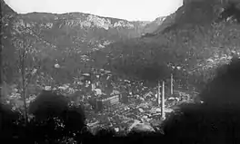Commonwealth Oil Corporation had also owned what was, after 1910, solely an oil refining operation, at Hartley Vale. It had been closed down in August 1913.[64] It appears to have reopened briefly, before closing down completely in May 1914. Fell did not reopen the refinery, after taking over the administration of COC in late 1914. However, he did remove from Hartley Vale some storage tanks—relocated to his lubricating oil refinery at Gore Bay (Sydney)—and pipework that was destined for Newnes.[65][66] All refining of the crude oil from Newnes and Torbane was subsequently at either Newnes or Gore Bay, dooming the small community of Hartley Vale.