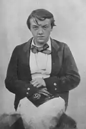 William Fisher sold his commission the year John was born, and became a coffee planter and later chief superintendent of police. He incurred such debt on his two coffee plantations that he could barely support his growing family.[21] At the age of six John (who was always known within the family as "Jack"[17]) was sent to England to live with his maternal grandfather, Alfred Lambe, in New Bond Street, London. His grandfather had also lost money and the family survived by renting out rooms in their home.[22] John's younger brother, Frederic William Fisher, joined the Royal Navy and reached the rank of admiral,[23] and his youngest surviving sibling Philip became a navy lieutenant on HMS Atalanta before drowning in an 1880 storm.[24]