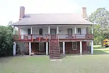 The John Ford Home (also known as Ford Stockade or Ford's Fort)[2] is a historic landmark located in Marion County, Mississippi, approximately 20 miles south of the city of Columbia, near the community of Sandy Hook. Built in 1809 by an early settler of the area, Reverend John Ford, the home is recognized by the National Register of Historic Places as an example of an "elevated frontier-style" structure that was common at the time in the Mississippi Valley along the Pearl River. The home is currently preserved by the Marion County Historical Society, and is available for public view.